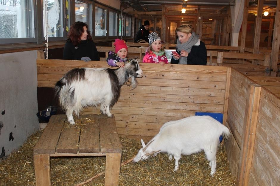 Sisällä navetan lämmössä tutustuttiin eläimiin.