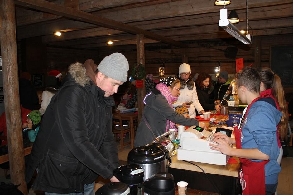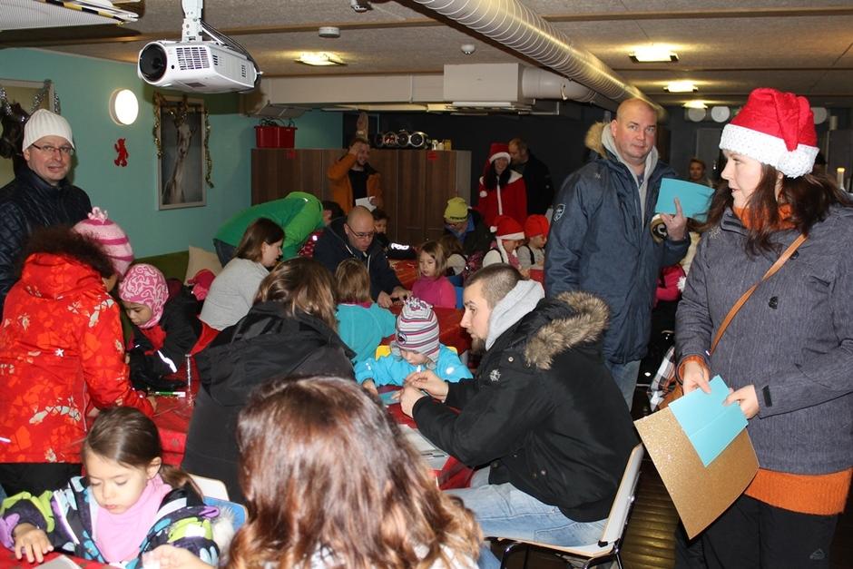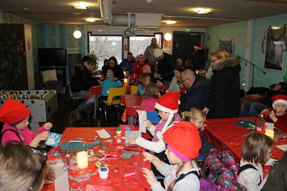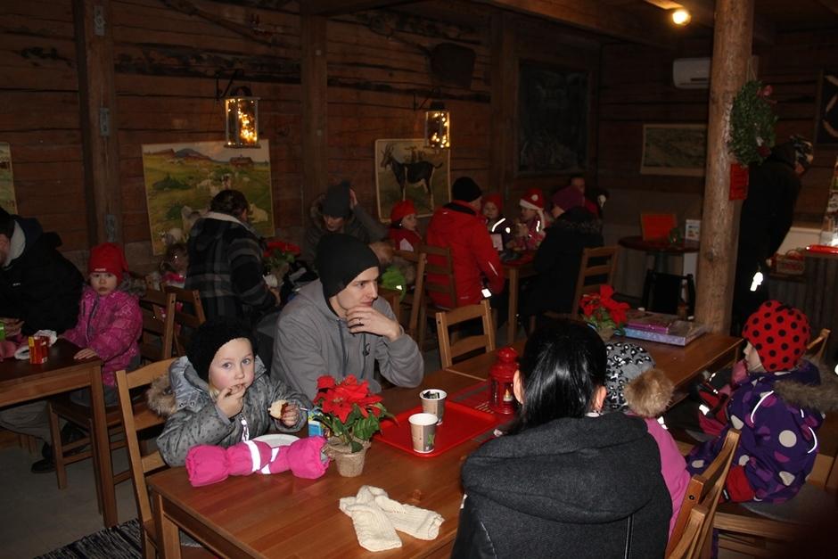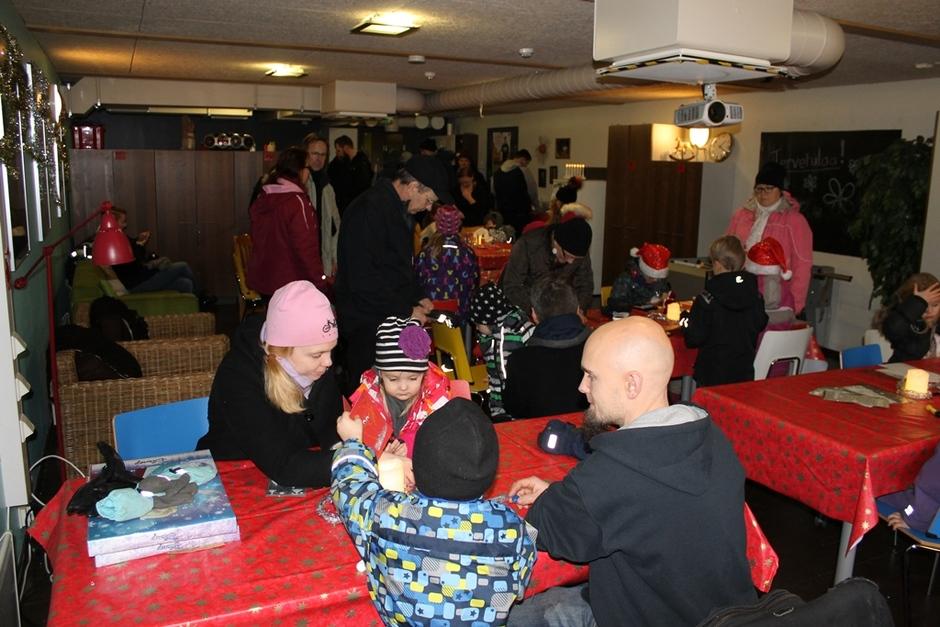Nuorten hoitamassa kahvilassa Joulupukki ja Joulurouva piipahtivat osasto 049:n perheitä tapaamassa.