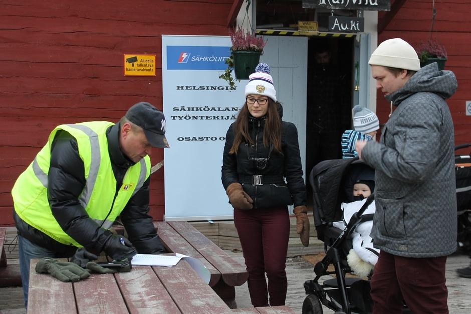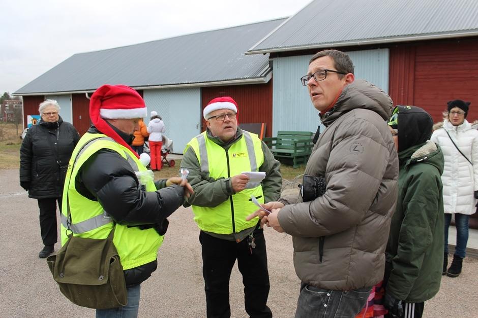 Jari ja Martti jakoivat vieraille lipukkeet päivän toimintoihin.