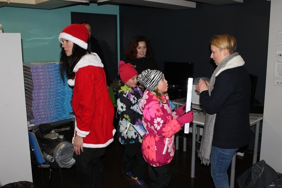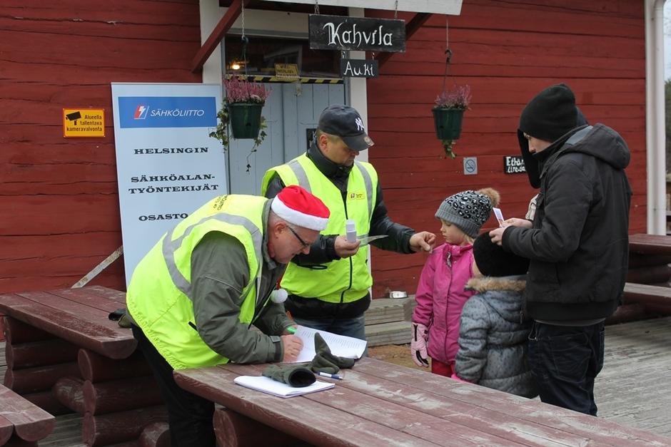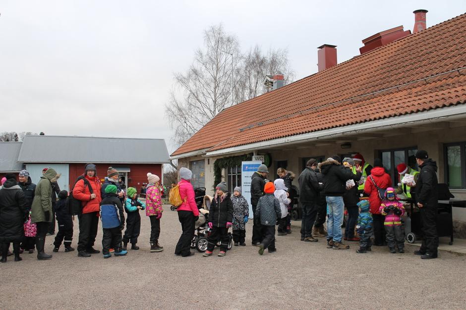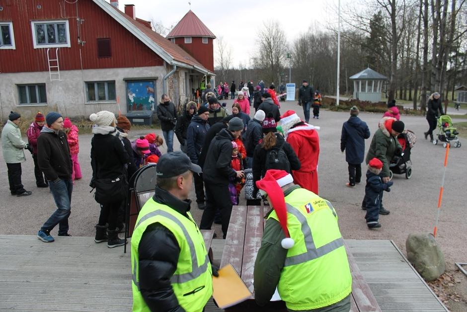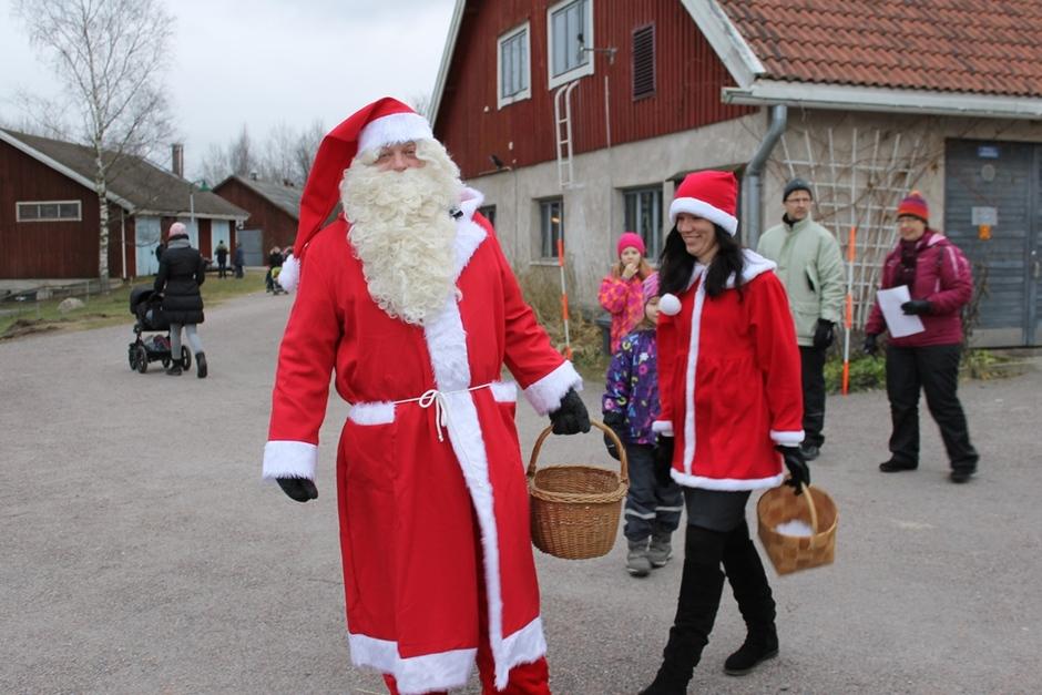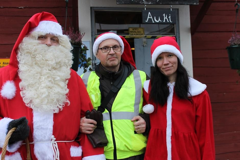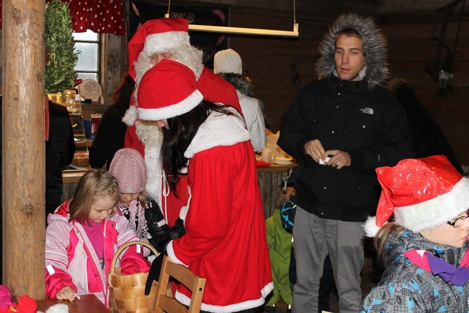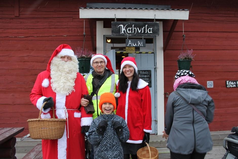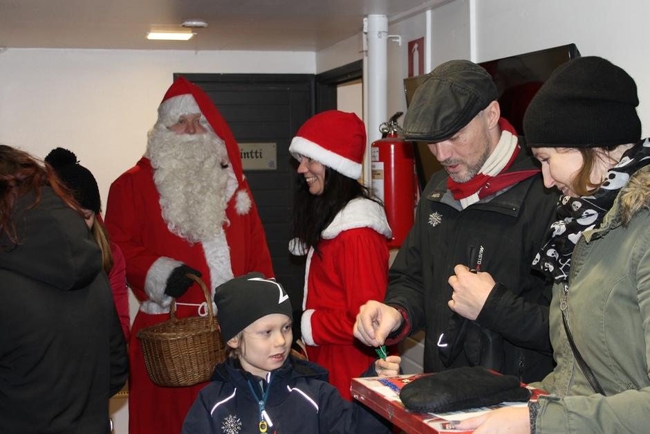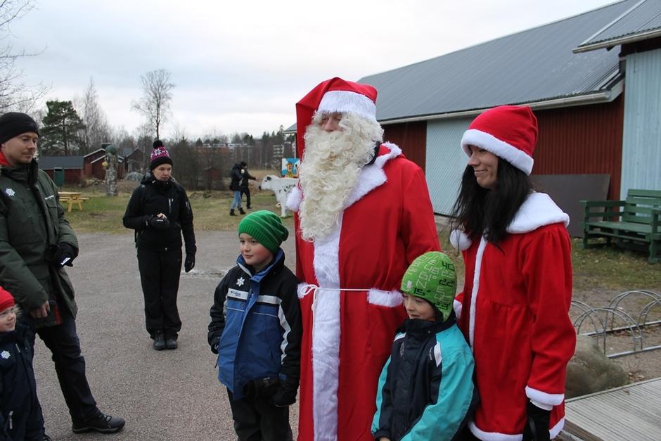 Joulupukki ja hänen Rouvansa ilahduttivat lapsia jakamalla namuja ja tarroja.