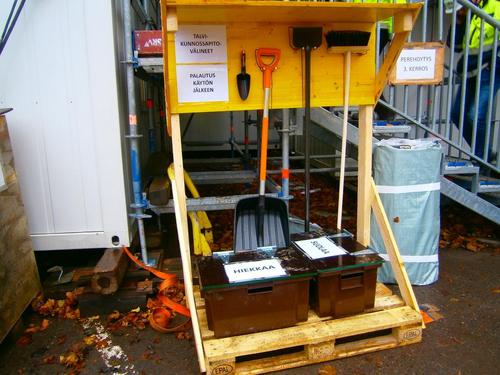 Työsuhteessa olevalle työntekijälle annetaan omaksi tai käyttöön suojapuku, turvajalkineet, suojakypärä, kuulosuojaimet ja suojalasit, jotka ovat tarvittaessa näkökyvyn mukaan hiotut.